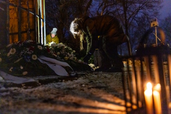 Landtagspräsidentin Kristina Herbst legt einen Kranz an der Holocaust-Gedenkstätte Bikernieki niederFoto: Landtag, Sönke EhlersGröße: 4 MB -