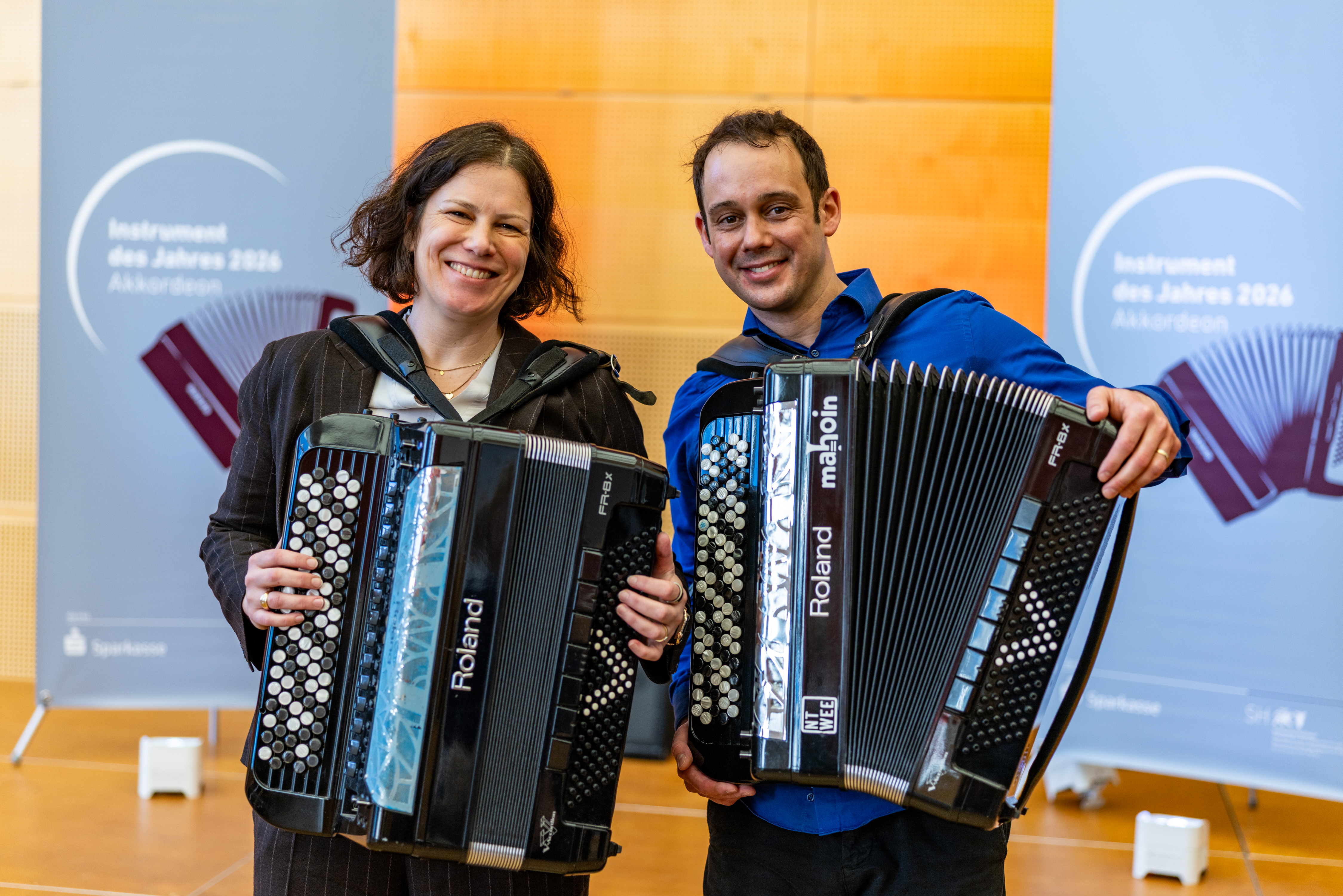 Kiel, 14.01.2026: Landtagspräsidentin Kristina Herbst und Akkordeon-Botschafter Nenad Nikolic.Foto: Landtag, Sönke EhlersGröße: 8 MB -