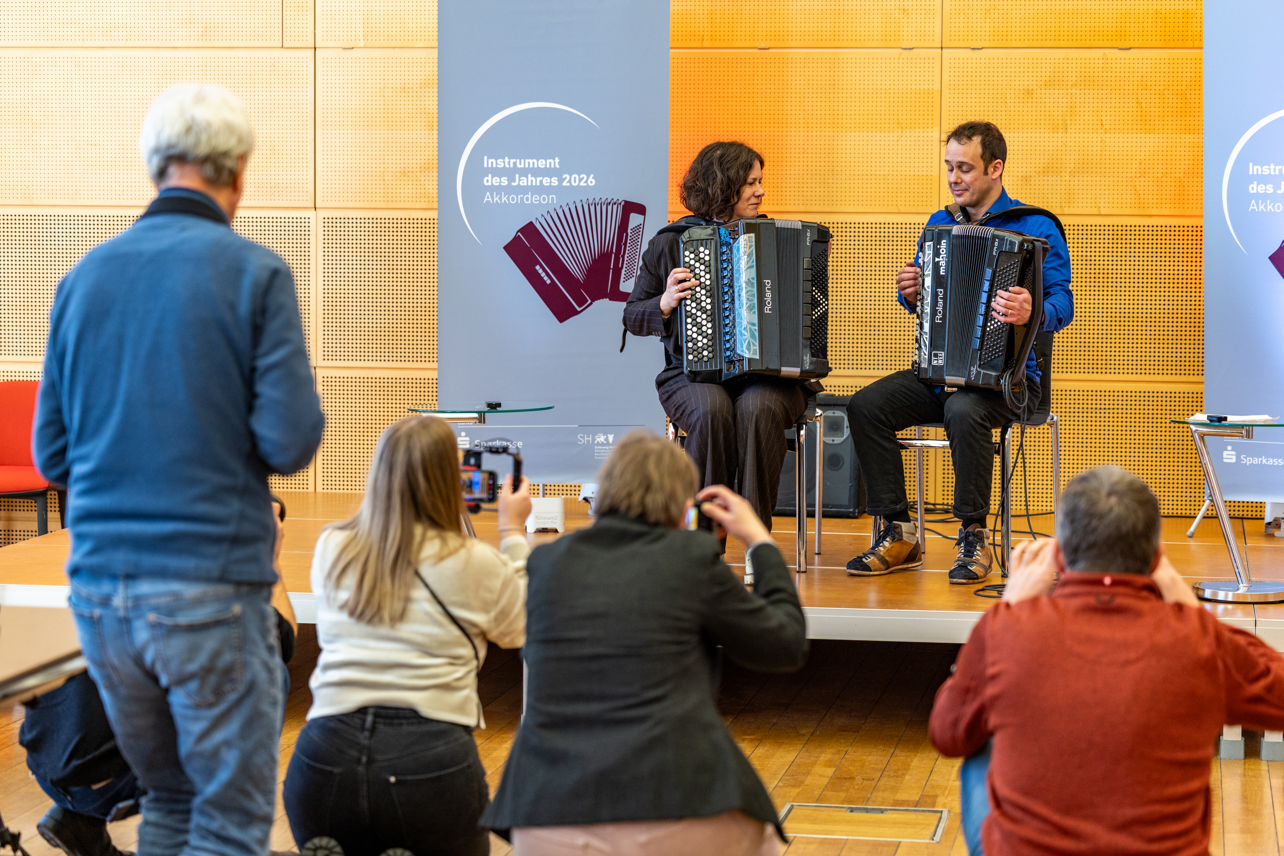 Kiel, 14.01.2026: Im musikalischen Duett: Landtagspräsidentin Kristina Herbst und Akkordeon-Botschafter Nenad Nikolic.Foto: Landtag, Sönke EhlersGröße: 10 MB -