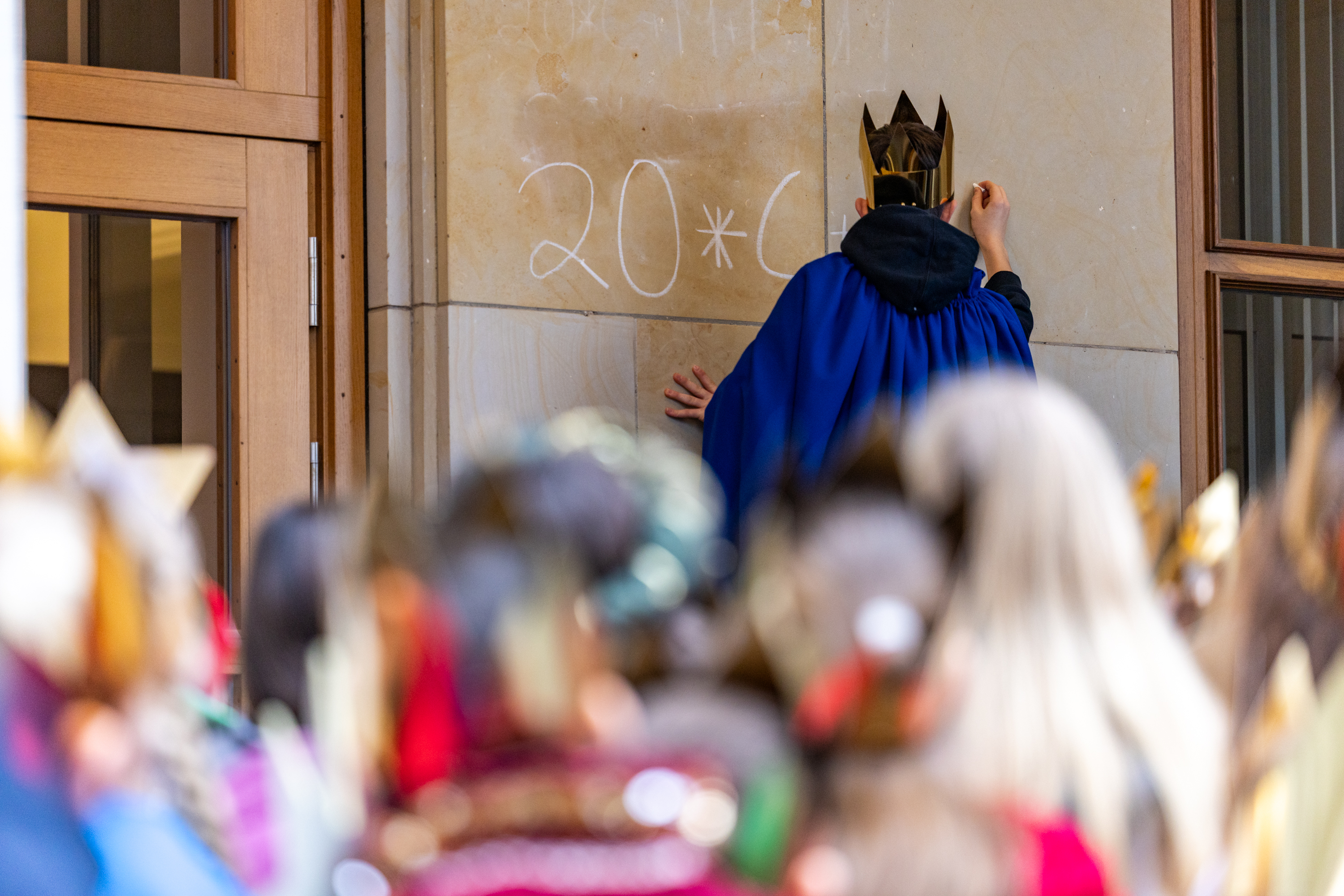 Kiel, 6. Januar 2025: Sternsinger besuchen am Tag der Heiligen Drei Könige den Landtag. Ein Mädchen schreibt den Segen an das Portal des Landeshauses.Foto: Landtag, Sönke EhlersGröße: 4 MB -