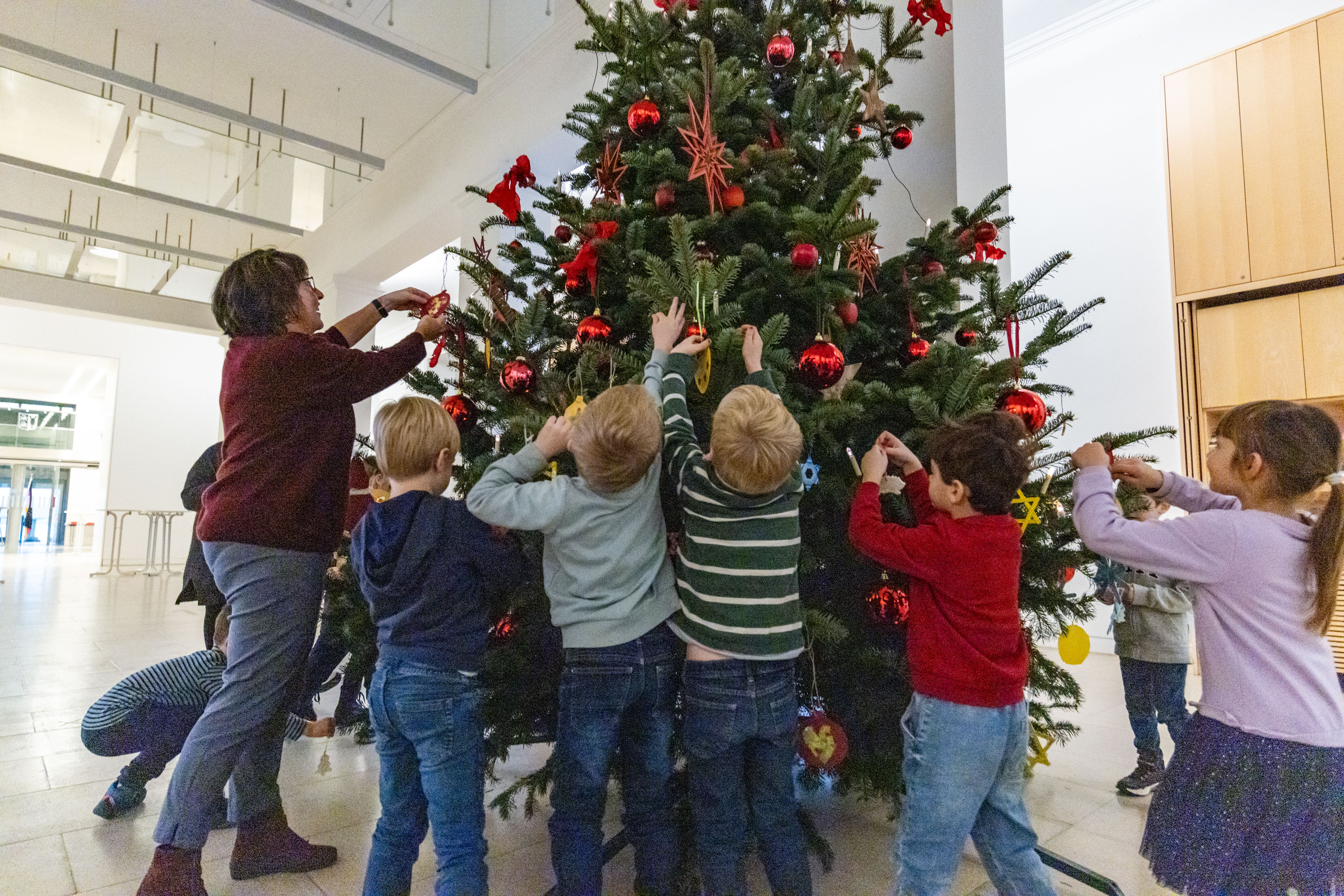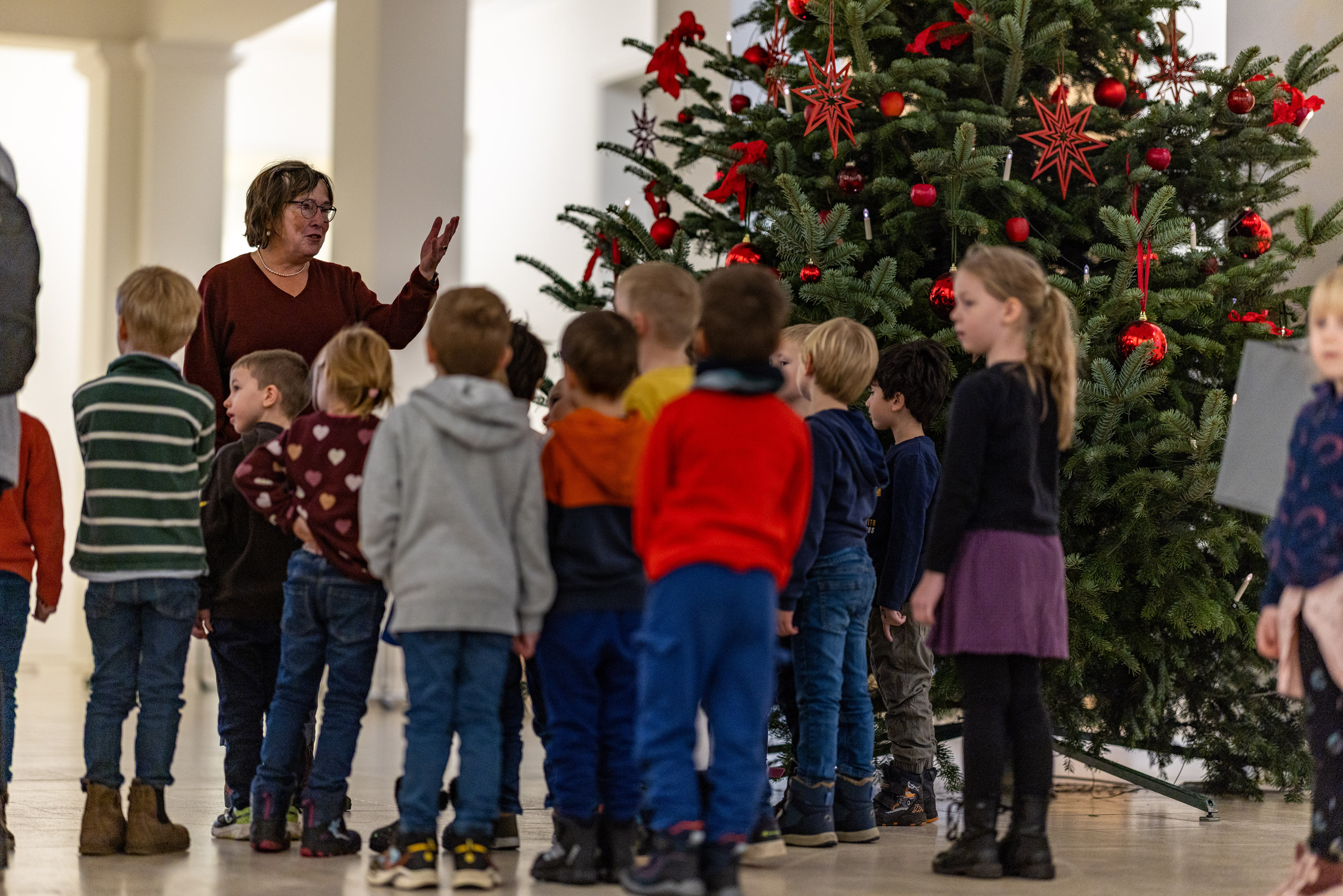 Kiel, 28. November 2025: Kinder der Kita Pusteblume aus Borstel-Hohenraden haben zusammen mit Landtagsvizepräsidentin Eka von Kalben den Tannenbaum im Schleswig-Holsteinischen Landtag geschmücktFoto: Landtag, Sönke EhlersGröße: 4 MB -