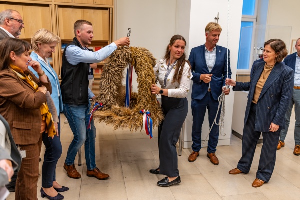 Die Landjugend Rendsburg-Eckernförde übergibt ihre Erntekrone an den LandtagFoto: Landtag, Sönke EhlersGröße: 3 MB