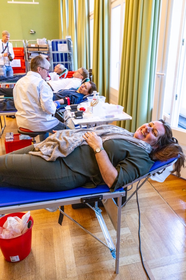 Kiel, 23. September 2025: Landtagsvizepräsidentin Beate Raudies bei ihrer ersten BlutspendeFoto: Landtag, Sönke EhlersGröße: 3 MB