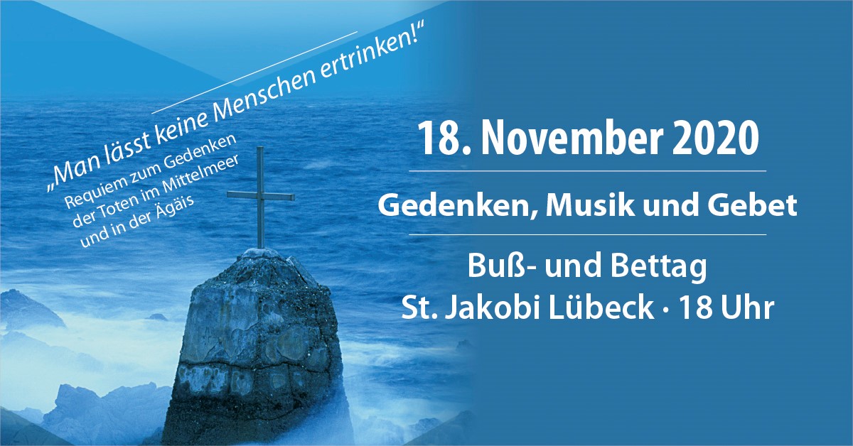 Jährlich wird am Buß- und Bettag in der Jakobikirche zu Lübeck, der Seefahrerkirche, der Menschen gedacht, die auf der Flucht nach Europa ihr Leben verloren haben. Die Kirchengemeinde St. Jakobi, die Flüchtlingsbeauftragte des Kirchenkreises Lübeck-Lauenburg, der Beauftragte für Flüchtlings-, Asyl- und Zuwanderungsfragen des Landes Schleswig-Holstein, das Theater Lübeck und das Bündnis United4Rescue laden zu Gedenken, Musik und Gebet ein. Unter Beachtung der Hygienebedingungen für Gottesdienste unter Pandemiebedingungen wollen wir auch in diesem Jahr der Toten gedenken. Musikalisch begleitet wird der Gottesdienst von Lena Seitz (Querflöte) und Gregor Früh (Orgel)