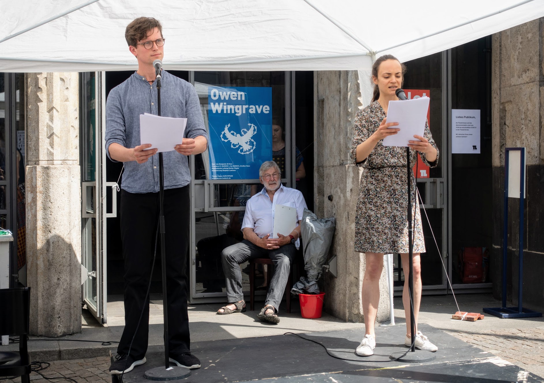 In dieser kulturellen Aktion lesen wir Bertolt Brechts Gedicht „Gedanken über die Dauer des Exils“ (1937) und Samuel Magos Kurzgeschichte „die stadt ohne uns“ aus dem Band „bernsteyn und rose“ (2021). Musik: das Ensemble Prisma und Streicher*innen des Philharmonischen Orchesters der Hansestadt Lübeck. Zu sehen ist eine Ausstellung der Künstler*innengruppe Esperanza.